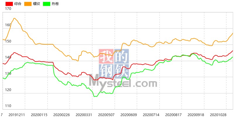 本周Myspic綜合指數(shù)報146.34點,較上一周上漲1.69%。其中,長材指數(shù)報163.24點,較上一周上漲2.13%。本周建筑鋼材市場價格大幅上漲,全國25個主要市場螺紋HRB400(20mm)均價為3955元/噸,較上周上漲95元/噸。