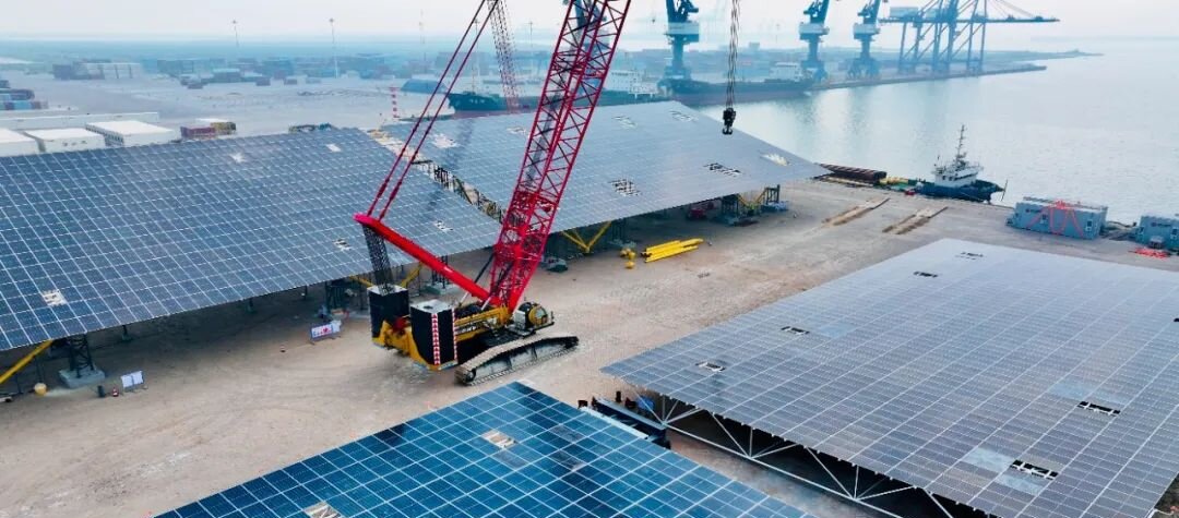 光伏堆場:在集裝箱堆場頂部鋪設光伏組件,為港口裝卸設備供電。上海洋山港光伏堆場項目年發電量超500萬度,減少柴油消耗150萬升;